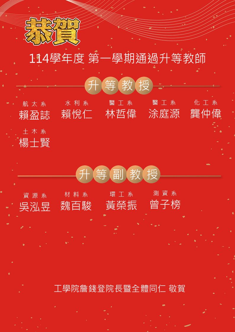 恭賀! 114學年度第一學期通過升等教師名單